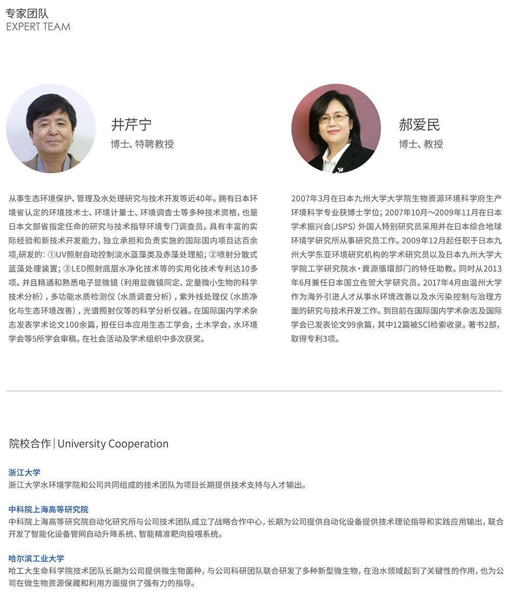 浙江清湖控股集團有限公司2016年8月成立于中國珍珠之都——山下湖,注冊資本5000萬元,2020年被認定為“高新技術企業”和“浙江省高成長科技型中小企業”,2023年被認定為國家科技型中小企業。公司一直專注于生態水治理及核心技術——”智能生物鏈治水·靶向養殖技術”的設備研發與應用,在富營養水體治理領域擁有十多項國家專利技術。公司通過該技術,實施生物法原位清淤、污水資源化高效利用,富營養水體可持續性常效修復,還原健康生態水環境,實現“既要珠光寶氣、又要碧水清波”,也為國家早日實現碳達峰碳中和目標作出清湖貢獻。