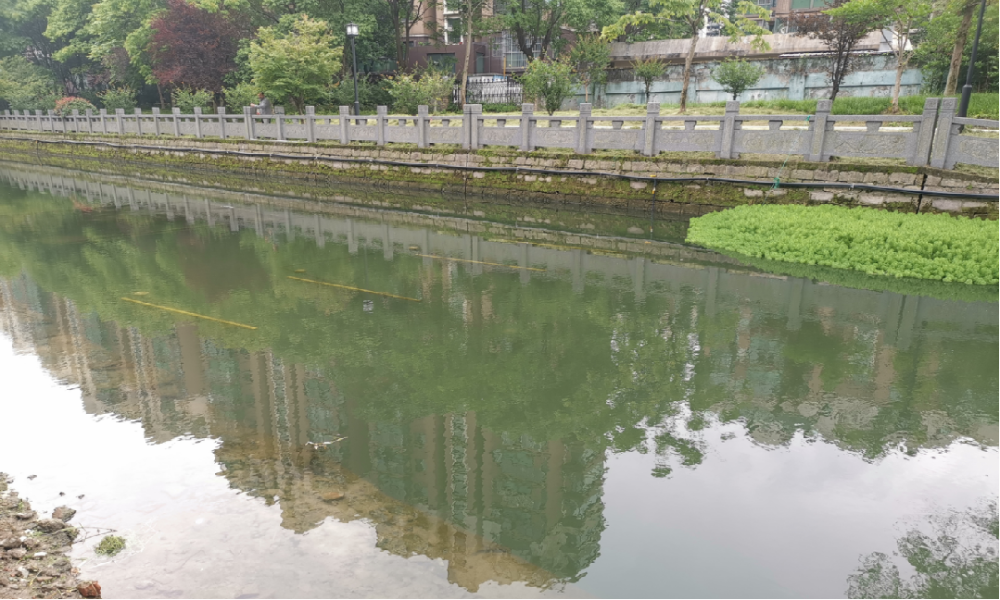 2022年4月,清湖控股在濱江區生態環境局的引薦下進入西興后河實施“原位清淤·智能生物鏈靶向治水”的示范項目,為亞運會區域河道治理樹樣板。后河河道位于濱江區亞運場館區域內,治理前,水體能見度低于25CM,全流域水體出現不同程度渾濁。河道底部仍存在大量污花與黑臭淤積,導致總磷、總氮、氨氮偏高,河床底部處于劣Ⅴ類水質指標。晴天發現有黑臭水體從雨水管道排入河道。